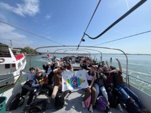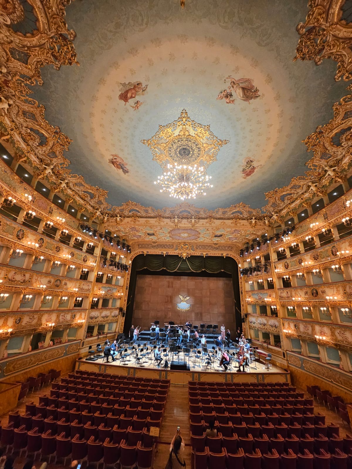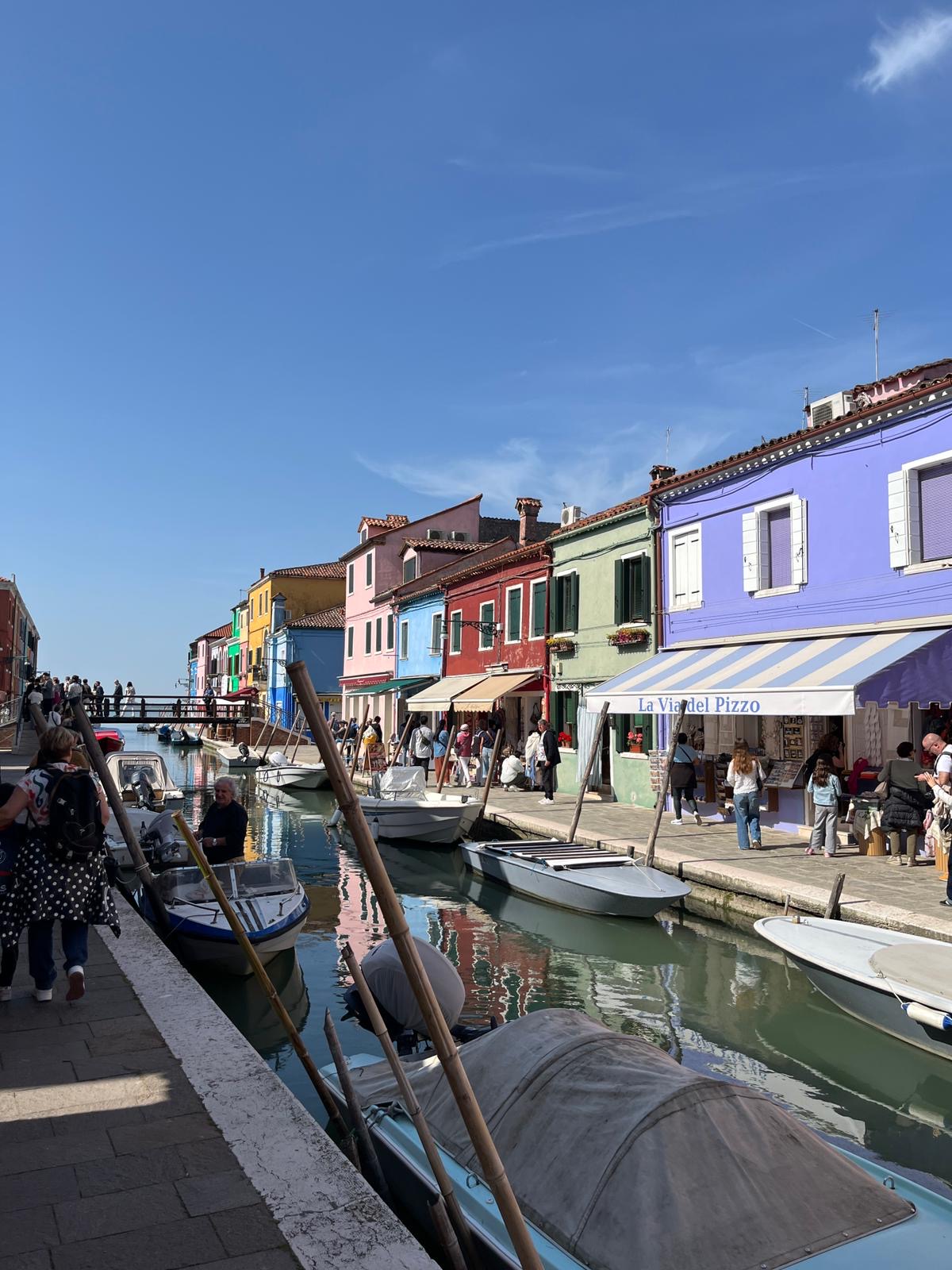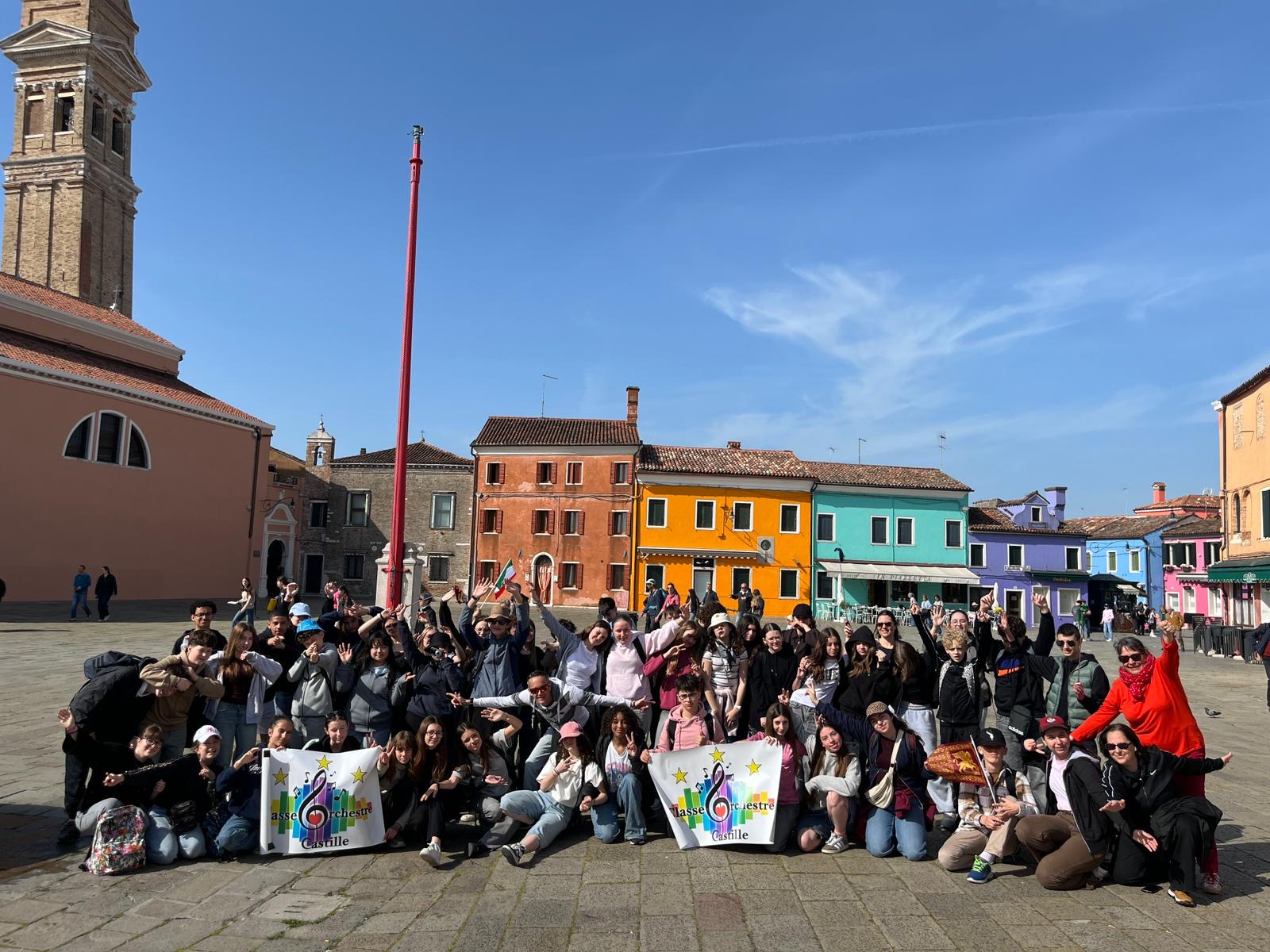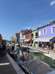 Sous un ciel bleu, nous nous sommes embarqués pour les îles de la lagune. Le matin Burano nous a émerveillés avec ses dentelles et maisons colorées. Vers midi, un souffleur de verre nous a impressionné avec la réalisation de vase soufflé à la canne, d’un chat et d’un cheval magnifique. Après une pause pique-nique dans un parc, des glaces délicieuses ont fait plaisir aux gourmands. Ensuite, après une trentaine de minutes, le bateau nous a ramené à Venise pour une dernière découverte : le théâtre de la Fenice. Un guide nous a expliqué son histoire, son architecture, son fonctionnement avec ses compositeurs et opéras exceptionnels. Et cerise sur le gâteau, nous avons assisté au début d’une répétition de l’orchestre symphonique. Beaucoup d’émotions … Notre séjour s’est terminé avec un repas au restaurant Canaletto. L’heure du départ est trop vite arrivée : 21h40.